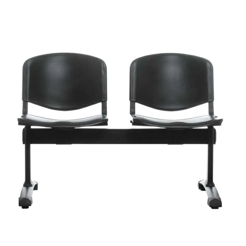 Banqueta Iso PP ergonómica con estructura metálica, asientos durables y patines regulables. Ideal para oficinas, salas de espera y espacios públicos.