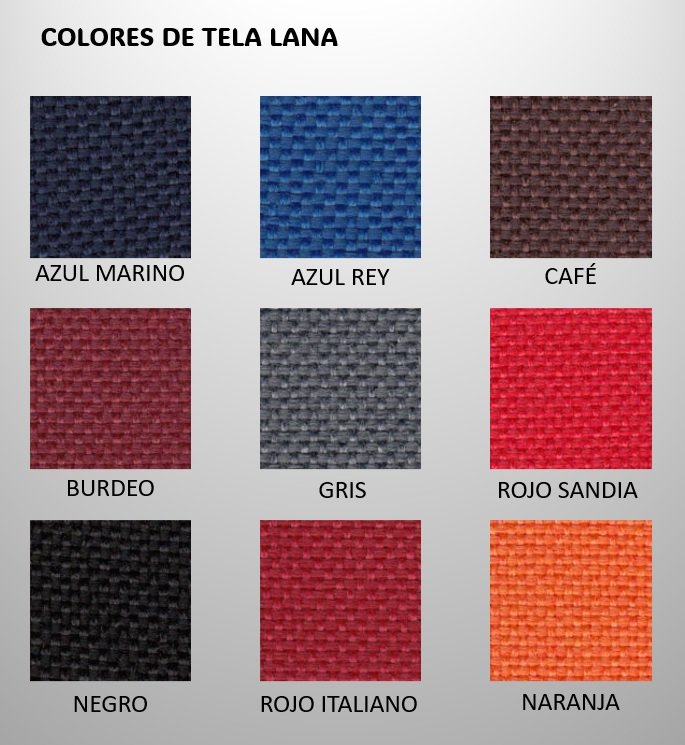 🌐 Respaldo y asientos tapizados en tela lana o ecocuero.