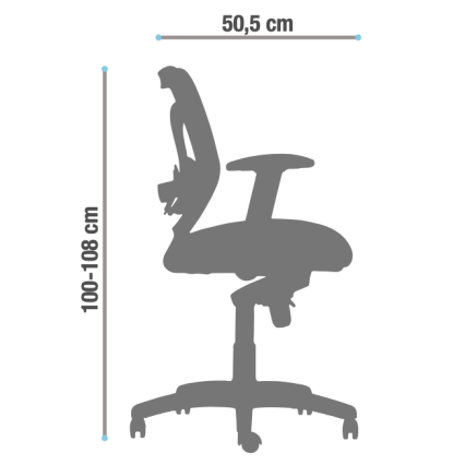 El respaldo y asiento de malla ofrecen ventilación constante, mientras que el soporte lumbar ajustable ayuda a aliviar tensiones en la espalda, promoviendo una postura saludable y evitando la fatiga. Gracias a su altura regulable y brazos ajustables, esta silla evita sobrecargas en cuello y hombros, mejorando tu confort durante largas horas de trabajo. Su base de poliamida reforzada con ruedas de 50 mm permite desplazarte con facilidad y seguridad, ideal para oficinas modernas y home office.