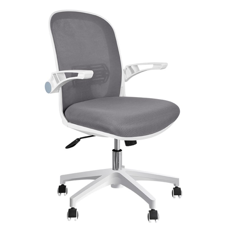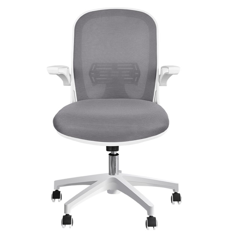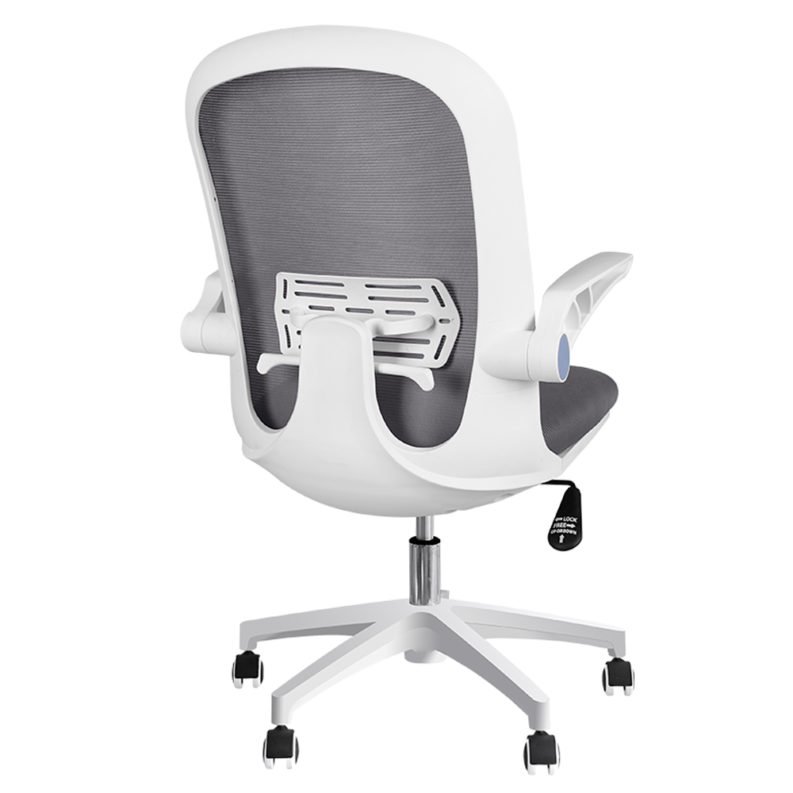 Silla Operativa Branko Blanca con respaldo en malla, soporte lumbar y base blanca de nylon. Confort, diseño y ruedas para piso flotante